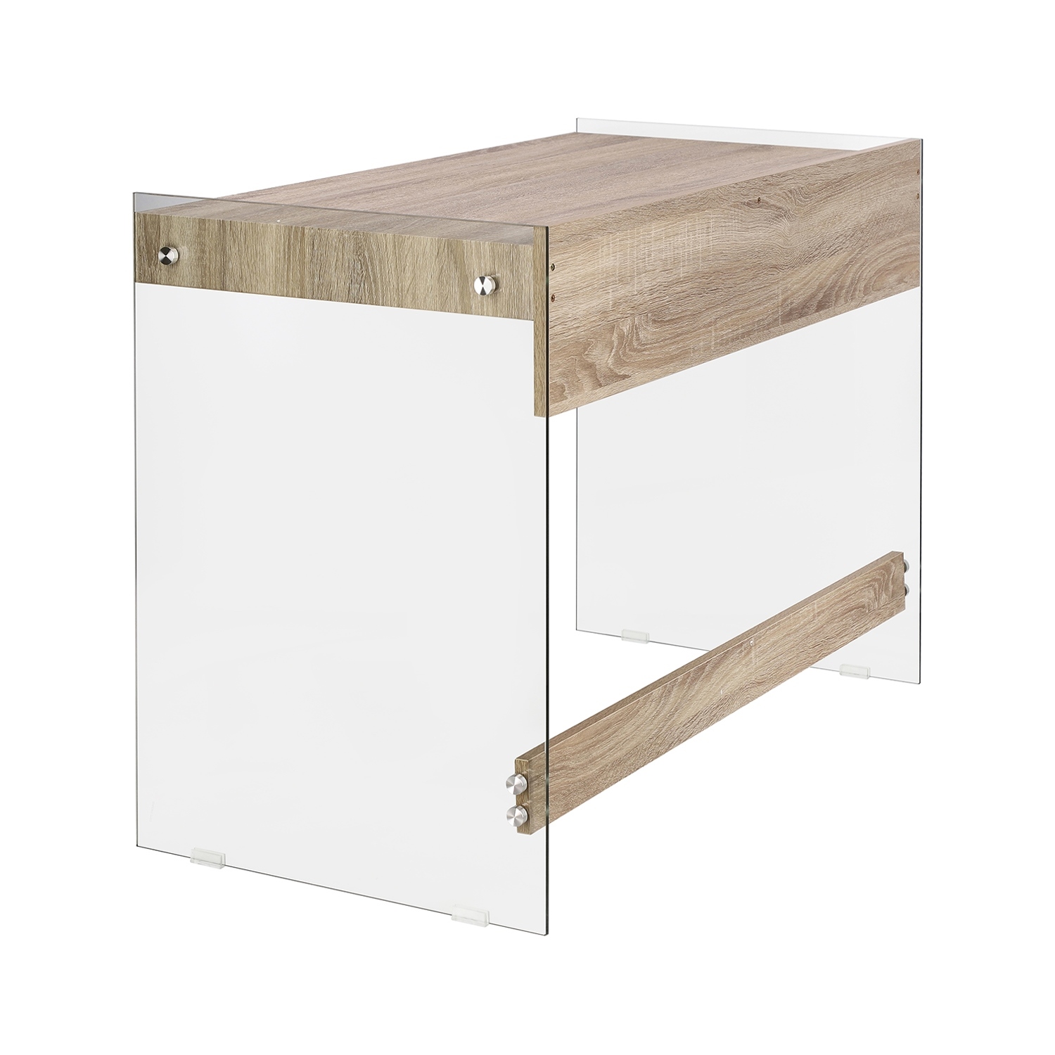 Escape to nowoczesne i funkcjonalne biurko, które idealnie odnajdzie się w gabinetach, salach konferencyjnych lub w domowym biurze. Blat wykonany został z płyty MDF, podstawa to szkło, które gwarantuje stabilność całej konstrukcji.Bardzo praktyczne i kompaktowe biurko Escape, to designerskie biurko idealnie sprawdzi się w małych przestrzeniach. Biurko zostało zrobione z połączenia wytrzymałej płyty MDF w okleinie drewna oraz transparentnego szkła. Blat z podstawą połączony jest za pomocą widocznych wkrętów.Wymiary kartonu: 101,7 x 12 x 56,5 cm