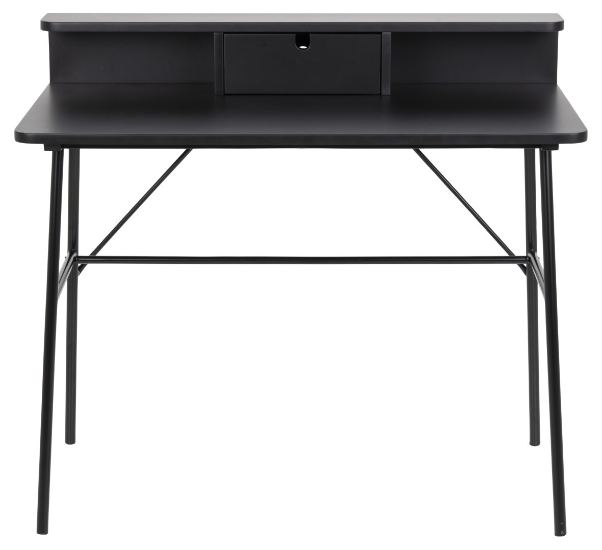 Biurko Pascal to minimalistyczne biurko wykonane z metalu oraz drewna bejcowanego na kolor czarny. Posiada nadstawkę z szufladką. To mebel idealny do biura lub pokoju młodzieżowego. Ilość kartonów: 1 Wymiary kartonów: 107×59,5x14cm Waga kartonów: 18,4kg