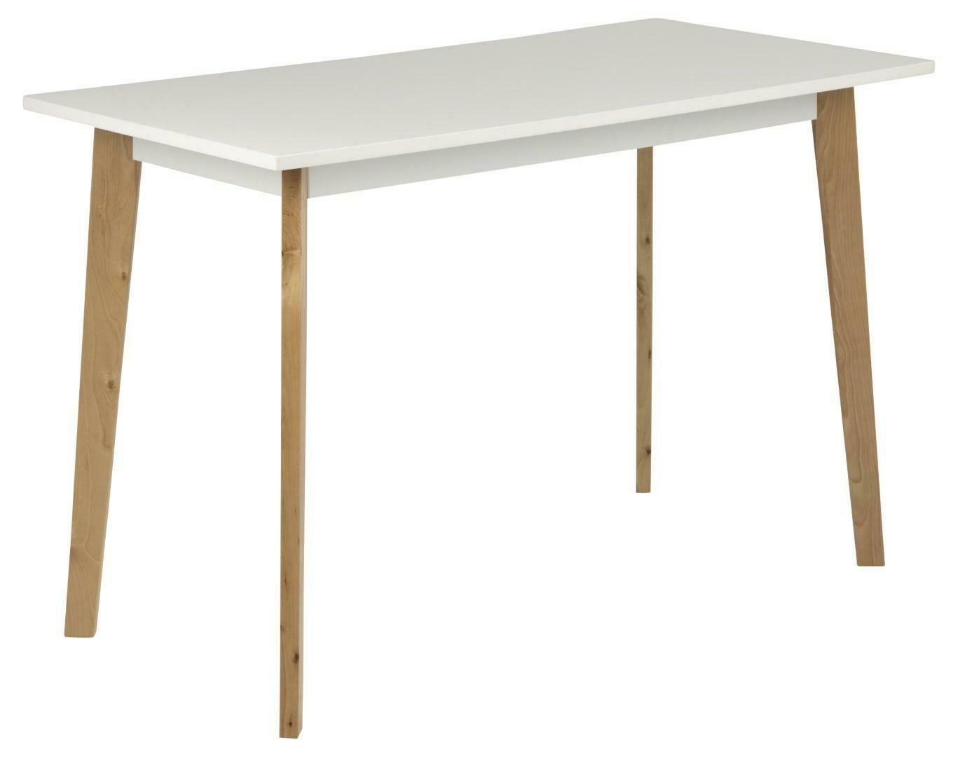 Biurko Raven utrzymane w stylu skandynawskim wykonane zostało drewnianego blatu lakierowanego na biało oraz drwnianych nóg ustawionych pod kątem dają ciekawy efekt wizualny. Dzięki temu że drewno, z którego zrobione są nogi biurka, zostało tylko polakierowane widoczna jest struktura drewna. Biurko pod blatem posiada jedną szufladę. Waga biurka 19 kg Ilosć szt. w kartonie: 1 Wymiary kartonu: 124 cm x 12 cm x64 cm