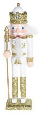 Dekoracja dziadek do orzechów w białym kolorze ze srebrnymi akcentami to hit każdych świąt bożego narodzenia. Sympatyczny żołnierz o puchatych białych włosach skradnie serce domowników. Biało złoty dziadek do orzechów dopełni świąteczną aranżację. Wysoki, na 18-centymetrów, dziadek został zrobiony z drewna sosnowego pomalowanego w świąteczne wzory. Dziadek posiada kwadratową podstawkę, dzięki której stoi stabilnie, więc śmiało możemy nim ozdobić stół na świąteczny obiad lub kominek.
